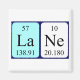 Lane spelled out as La Ne (Lanthanum Neon) on a magnet for the scientist in you.