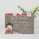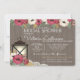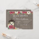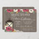 Burgundy, maroon and gold flowers and lantern bridal shower invitation with country barn wood and lace for a boho, rustic, country elegant bridal shower.
