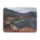 A beautiful view of the green lake at El Golfo on the island of Lanzarote in the Canary Islands printed on a souvenir fridge magnet.