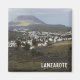 A landscape of the island of Lanzarote, Canary Island, Spain. Mountains on the background and a panoramic view of a typical village with white houses.