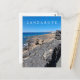 A beautiful view of volcanic stones by the sea on the island of Lanzarote in the Canary Islands printed on a postcard.