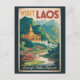 Laos retro vector travel design. From the UNESCO city of Luang Prabang and the spiritual charm of Vientiane to the natural beauty of Kuang Si Falls and the Plain of Jars, Laos offers an authentic blend of nature, history, and tranquility.