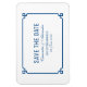 Simple and minimalist Deco Chic Save the Date Flexi Magnet with a modern dark blue art deco ornamental border. This classic and elegant save the date magnet is easy to customise with your wedding details. Find more personalisation options by clicking Customise.