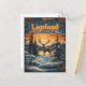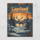 A serene and nostalgic depiction of Lapland, Finland, known for its pristine wilderness, snowy landscapes, and unique cultural heritage. The design features the region's iconic reindeer, Northern Lights dancing across the night sky, and cosy log cabins nestled in snow-covered forests, all illustrated in a vintage style. This artwork captures the tranquil beauty and adventurous spirit of Lapland, inviting viewers to experience its magical atmosphere and Arctic wonders.