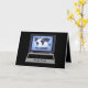 An original graphic illustration of a laptop computer with the world map on the screen by artist/designer Charmaine Paulson. The card has text templates for your personalisation.