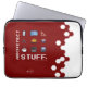 The sleeve is made of nice feeling material and seems very durable. I'm not sure how easy it'll be to clean, but the construction seems sound and the fabric is quick thick. I also like the double zipper. The printing is lovely and appears durable. The white on black contrast is nice, and the design very elegant.