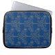An elegant sleeve to protect your laptopd, with a gold-effect floral pattern on a deep blue background, from a digital design by Judy Adamson.