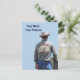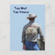 This postcard features the backside of a cowboy wearing a vintage Laramie shirt. Placed on a light sky blue background, it makes a stunning photograph. The customisable text on the front says "True West True America", and the back of this card tell a bit about the old Wild West town of Laramie.