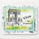 This design features a collage of Paris street scenes with the L'Arc de Triomphe prominently displayed. Using layering, colour burns, and other digital collage techniques, I have created this with both vintage and modern flair. "Vive la France!" (Long live France!) seems an appropriate slogan for this design, but you may purchase it without text, or create your own, by visiting my store where I have offered several versions of this design. Great for Francophiles or for your French themed occasions.