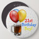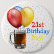 A MUST have button for the "21st Birthday Boy" Colourful polka dots,a glass of cold beer and three balloons, show that this day will be remembered for years to come. This pinback badge button is LARGE- it measures 6 inches around and that is how it should be. Scream it to the world..."I'M 21" Congratulations on your milestone. zazzle.com/hungaricanprincess. Makes a wonderful gift for someone special.