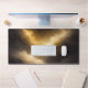 This large extended mouse pad features an abstract deep space nebula created with a refined palette of golden yellows, dark grays, and soft white highlights, evoking a sense of cosmic vastness and quiet elegance.