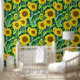 Gorgeous watercolor sunflowers stick and peel wallpaper. Yellow, green and brown floral wallpaper for those who love sunflowers.