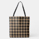 Large Black and Camel Brown Houndstooth Check Tote Bag