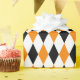 A wrapping paper designed with a black, orange and white harlequin pattern in large size. Customise the white background colour among other options.