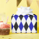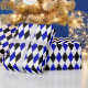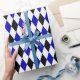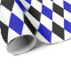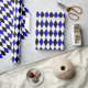 A wrapping paper designed with a black, royal blue and white harlequin pattern in large size. Customise the white background colour among other options.