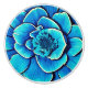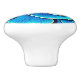 Knob in a giant, beautiful camellia flower in shades of cobalt blue and turquoise, accented with dark indigo and white