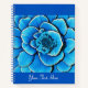 Journal in a giant, beautiful camellia flower in shades of cobalt blue and turquoise, accented with dark indigo and white, with customisable text