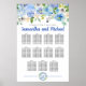 Beautiful blue hydrangeas create an elegant watercolor border at the top of this large 11-Table seating chart. A dash of purple hydrangeas give it depth and creamy white flowers keep it light and airy. Green, leaves and dangling vine, give it just a touch of Boho style. The wedding couple names are written in a bright blue trending script font. The wedding date is featured in a blue hydrangea wreath at the bottom. This blue floral seating chart is part of the Blue Hydrangea collection that contains signs, programs, menus, place cards and table decor that let you easily and affordably personalise your wedding ceremony and reception. You should see a link to it on this page. If you can' t find the link or need help with an item, please contact me.
