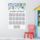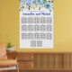 Beautiful blue hydrangeas create an elegant watercolor border at the top of this large 17-Table seating chart. A dash of purple hydrangeas give it depth and creamy white flowers keep it light and airy. Green, leaves and dangling vine, give it just a touch of Boho style. The wedding couple names are written in a bright blue trending script font. This blue floral seating chart is part of the Blue Hydrangea collection that contains signs, programs, menus, place cards and table decor that let you easily and affordably personalise your wedding ceremony and reception. You should see a link to it on this page. If you can' t find the link or need help with an item, please contact me.