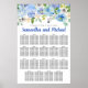 Beautiful blue hydrangeas create an elegant watercolor border at the top of this large 19-Table seating chart. A dash of purple hydrangeas give it depth and creamy white flowers keep it light and airy. Green, leaves and dangling vine, give it just a touch of Boho style. The wedding couple names are written in a bright blue trending script font. This blue floral seating chart is part of the Blue Hydrangea collection that contains signs, programs, menus, place cards and table decor that let you easily and affordably personalise your wedding ceremony and reception. You should see a link to it on this page. If you can' t find the link or need help with an item, please contact me.