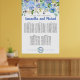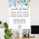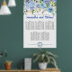 Beautiful blue hydrangeas create an elegant watercolor border at the top of this large 5-Table seating chart. A dash of purple hydrangeas give it depth and creamy white flowers keep it light and airy. Green, leaves and dangling vine, give it just a touch of Boho style. The wedding couple names are written in a bright blue trending script font. The wedding date is featured in a blue hydrangea wreath at the bottom. This blue floral seating chart is part of the Blue Hydrangea collection that contains signs, programs, menus, place cards and table decor that let you easily and affordably personalise your wedding ceremony and reception. You should see a link to it on this page. If you can' t find the link or need help with an item, please contact me.