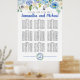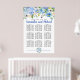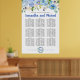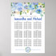 Beautiful blue hydrangeas create an elegant watercolor border at the top of this large 9-Table seating chart. A dash of purple hydrangeas give it depth and creamy white flowers keep it light and airy. Green, leaves and dangling vine, give it just a touch of Boho style. The wedding couple names are written in a bright blue trending script font. The wedding date is featured in a blue hydrangea wreath at the bottom. This blue floral seating chart is part of the Blue Hydrangea collection that contains signs, programs, menus, place cards and table decor that let you easily and affordably personalize your wedding ceremony and reception. You should see a link to it on this page. If you can' t find the link or need help with an item, please contact me.