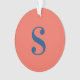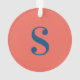 Simple orange ornament features a stylish, large dark blue monogram on each side. Easily add your initial in the sidebar. Makes a great gift.