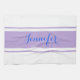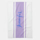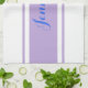 Large Blue Script Name, Lavender Stripes on White Tea Towel