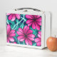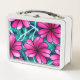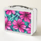 Large Bright Pink Flower Pattern Metal Lunch Box