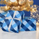 Large scale modern take on a classic gingham plaid wrapping paper in shades of denim blue from deep indigo to pale chambray blue