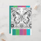Immerse yourself in the art of colouring with our elegant colouring card, now available in a larger 6.5" x 8.75" format, designed specifically for adult women who appreciate both creativity and relaxation. This card features beautifully detailed butterfly line art complemented by a carefully selected colour palette guide, making your colouring choices easy and enjoyable. The palette, featuring lush greens, deep purples, vibrant pinks, and soothing turquoise, brings each butterfly and flower to life, transforming them into stunning works of art.