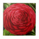 Ceramic tile in a vintage botanical illustration of a single, large, camellia blossom, digitally enhanced and coloured, in shades of deep Chinese red
