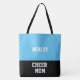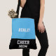 Cheer mum's carry all your gear with you in this cute stylish large tote bag shown in blue and black colour block. Shown with a sample name of your child perhaps.