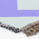 A quality printed throw has its advantages. This is a much finer weave throw than its loopier cousins, and though lighter, it is worth the investment for custom room accessorizing. The back is much prettier than the typical brown, and the fringe on the long sides very vivid, the selvage nicely done. Before photographing, I washed the throw in cold water, delicate, with a thicker woven throw the same size. On tumble dry low, this throw was dry in half the time as the other. This is a very practical quality if you use throws for furniture covers or to wrap up in frequently. The sleekness of the fabric makes it a great layer for accenting or protecting without the feeling of sitting on too much stuff. Perfect for napping or when you feel a light chill coming on. The color printing is beautiful and on this fabric, matched the design and color of my Photoshop image. This is an advantage for blending room fabrics and colors. The fringe on the short sides prints the colors from the design image and therefore varies from the side fringe. I streaked a white fractal line through the plaid pattern to give the illusion of weaving. This printed as crisp as an illusory thread, and put some white in the short side fringe, showing another advantage of print vs loomed- for artistic purposes, line lines, detail, and color integrity can be planned and preserved. My loomed throws have color limitations and more of a needlepoint texture. Print throws reproduce an exact image. The throw felt a little stiff straight out of the package, but this went away in the first delicate wash. Of course I searched the wash water for ink or bleeding and there was none.