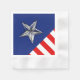 A silver chrome like large star design presented here on a patriotic style graphic print. Good for a patriotic occasion, sports event, or for a gift with an American flavour to it.