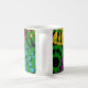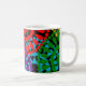 This mug has a Black History design of large circles formed from raindrop shapes and circles in red, yellow, purple, green, and turquoise.