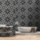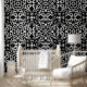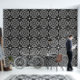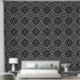 This large bold black and white patterned wallpaper features an abstract geometric pattern with large circles. A modern design that makes a statement. Great for any room in your home or office.