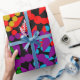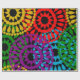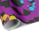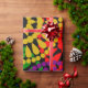 This wrapping paper has a Black History design of large circles formed from raindrop shapes and circles in red, yellow, purple, green, and turquoise.