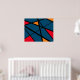 Large colourful modern geometrical abstract art poster print. Trendy wall decor for new home, bedroom, kitchen, living room, bathroom, corporate business, company office space, hall way, lounge area, cafe, bar, restaurant, hotel room, museum, house, garage etc. Big 30 x 24 inch geometrical artwork decorations ( about 76 x 60 cm). Frame and hang above or behind sofa, coach, bed, desk etc. Customisable colours to match any contemporary or luxury interior. Classy decorative design gifts for sale. Customisable sizes to fit any area. Dark orange red and blue warm expressive colours with black lines. Also available as thick canvas. Hang horizontal landscape or vertical way.