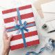 A wrapping paper designed with a dark red and white striped pattern in large size. You can change the red for a different colour.