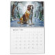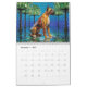 A dog calendar featuring twelve 3d glass dog breeds in extravagent settings.