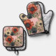 Large Florals Rich Rust, Deep Purple, Cream Oven Mitt & Pot Holder Set