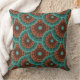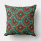 A beautiful big flowery pattern in teal blue, orange and brown; a real luxury look home decor throw pillow.