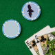 Large fruit bat in flight, on a blue background. The back of the chip is pale blue. You can change the color, add text, or a picture. You can also change the style and color of the edge.