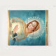 Flame of Love of the Immaculate Heart of Mary Icon with top and bottom gold band with logo on top. Teal bokeh background.