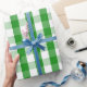A wrapping paper designed with a green and white gingham pattern in large size.