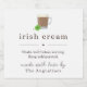Large Homemade Irish Cream Liqueur labels include a cute, hand-drawn drink and four leaf clover, some basic instructions, and a personalised gift message in a clean, modern design.