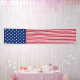 Large indoor United States American flag banner with stars and stripes that fill the banner large enough to stretch across 12 feet of space on an indoor wall or hung from the ceiling. Use this banner for a political rally, a veterans themed event, Independence day, patriotic event celebrating anything American. or corporate conventions and trade shows.