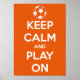 A fun twist on a vintage WW2 British motivational poster recreated on a solid orange background with white text, soccer ball silhouette and a new message of encouragement for players and fans everywhere.