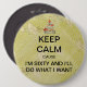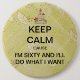 Our Large Keep Calm Sixtieth Birthday Button is a fun and quirky gift idea for friends turning 60. Available in a variety of sizes. Parody design features birthday cake motif joined with a distressed modern grunge background pattern. Available in a variety of button sizes. Volume discounts available.